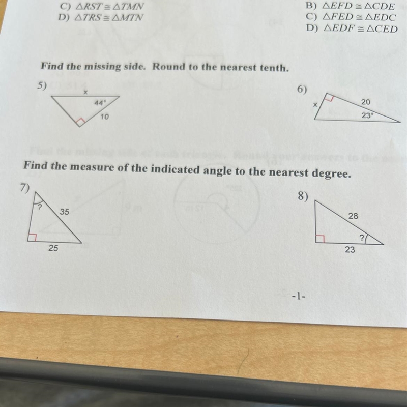 Since problems (7) and (8) require to find angles in a right triangle, we will need to use inverse trigonometry.