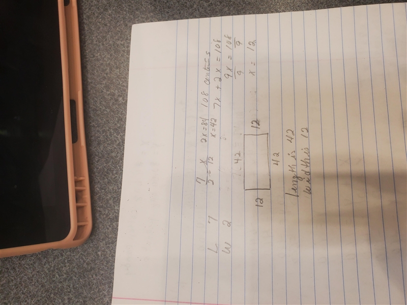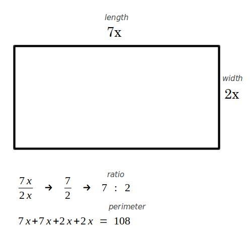 HELP The ratio of the length of a rectangle to its width is 7 : 2. If the perimeter of the rectangle is 108 centimeters, what are the dimensions of the rectangle?