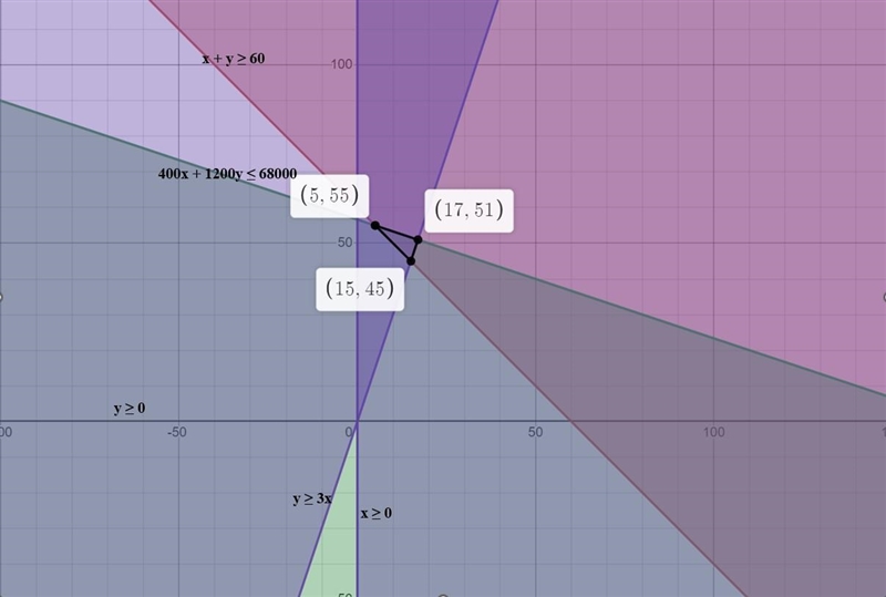 The three vertices are (5, 55), (15, 45) and (15, 45)