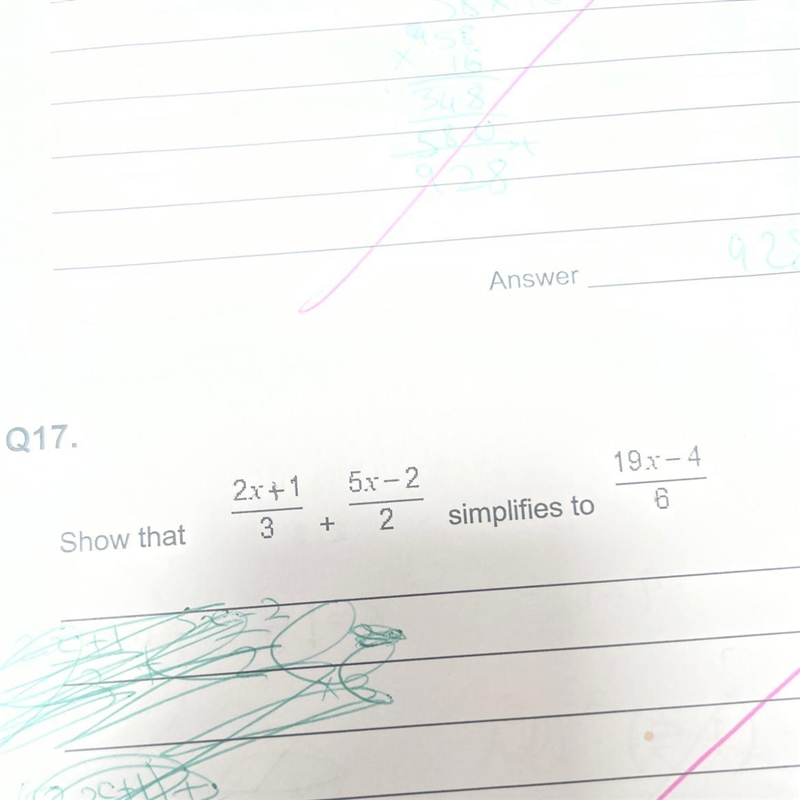 Please help :(( show that 2x+1 /3 + 5x-2 /2 simplifies to 19x-4 /6-example-1