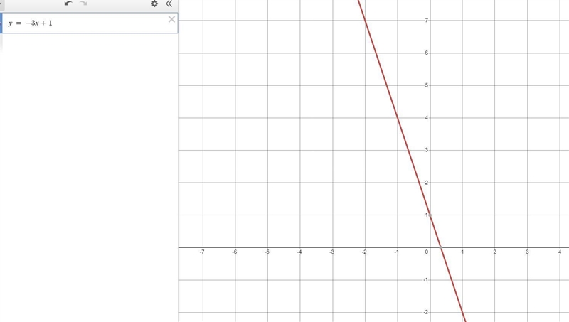The graph crosses the y axis at 1. The slope is -3. If you start at the point (0,1) where the line crosses the x axis and go down 3 and right 1, you will be back on the line (1,-2). -3 is the steepness of the line.