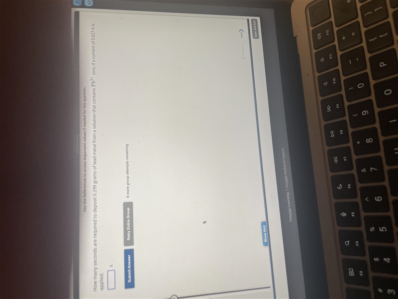 The amount of time required to deposit this amount of lead at a current of 0.627 A is given by the equation: