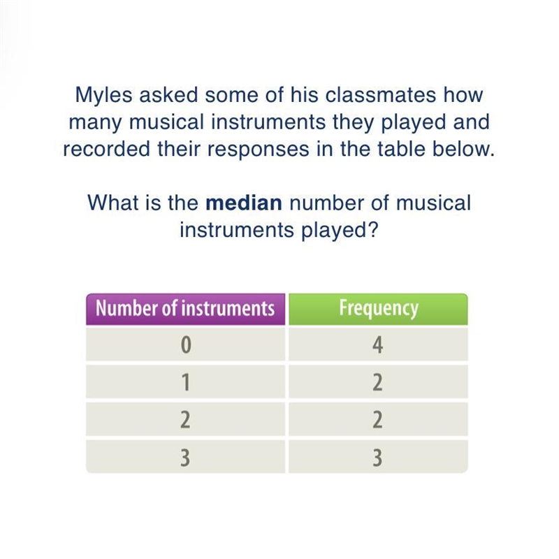 To find the median number of musical instruments played, we first need to arrange the data in ascending order:
