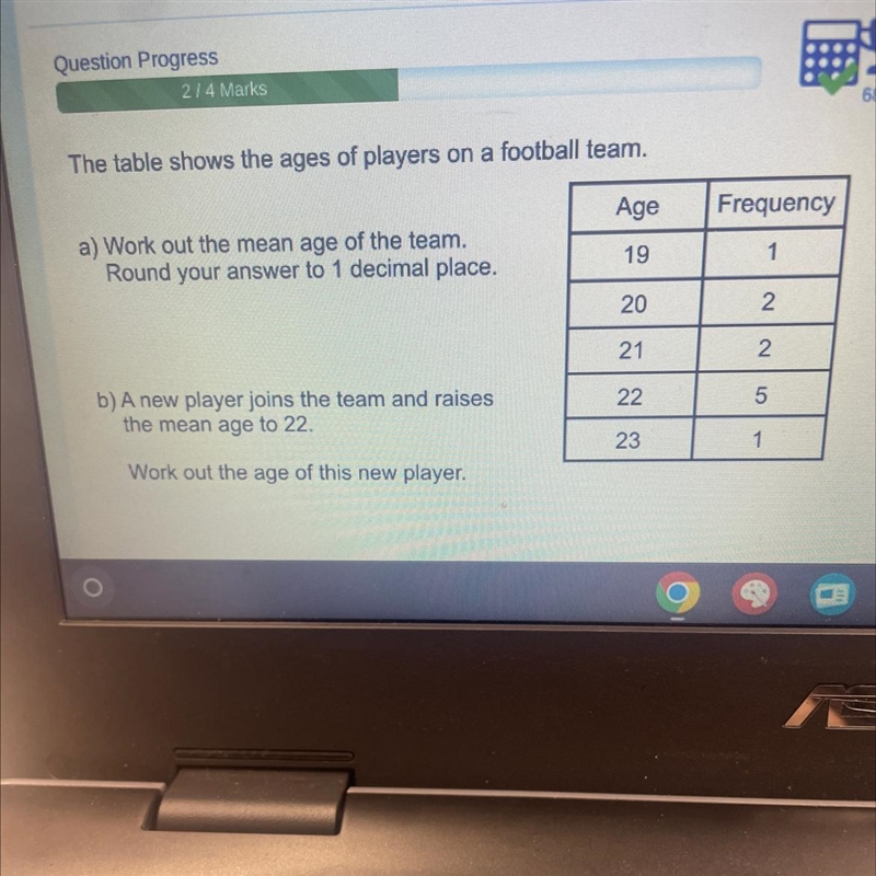 a) (19 + 20(2) + 21(2) + 22(5) + 23)/11 =