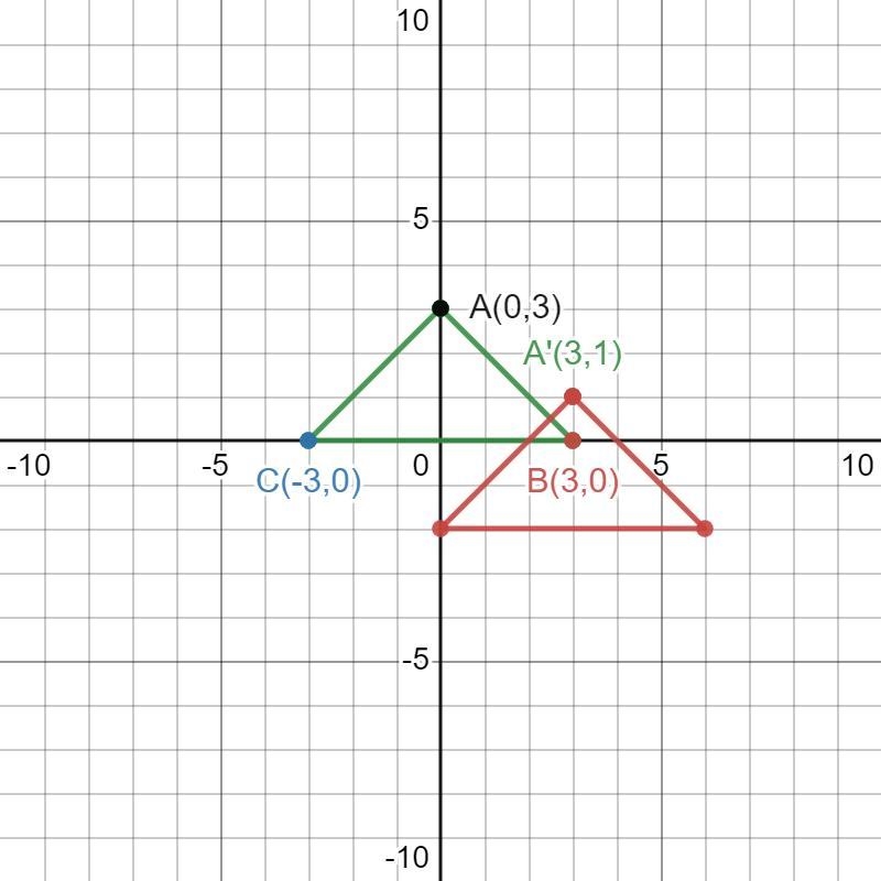 A triangle ABC has the coordinates A (0, 3), B (3, 0), C (-3, 0). If you translate the triangle 3 units right and 2 units down, what are the coordinates of A´? Choose the best answer from the options below: