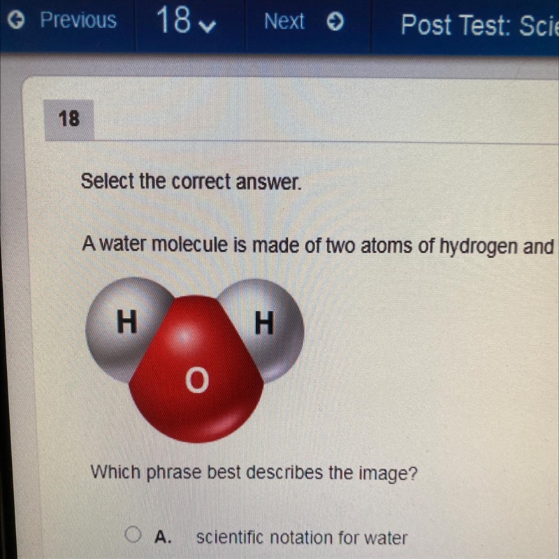 A water molecule is made of two atoms of hydrogen and one atom of oxygen, as shown in the image.
