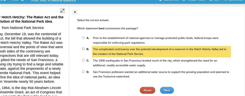 i think it’s B because it mentions how the national park service was created