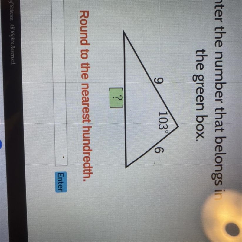 This seems to be an isosceles triangle, which means that 2 sides are equal. In this case, that would be 9.