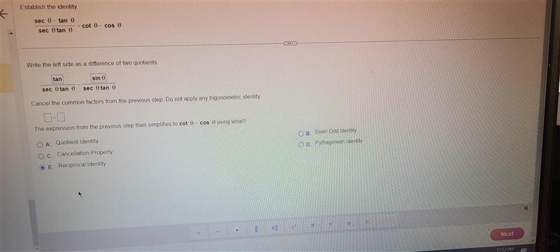 Next in order to match the RHS, we would apply the Reciprocal Identity and get