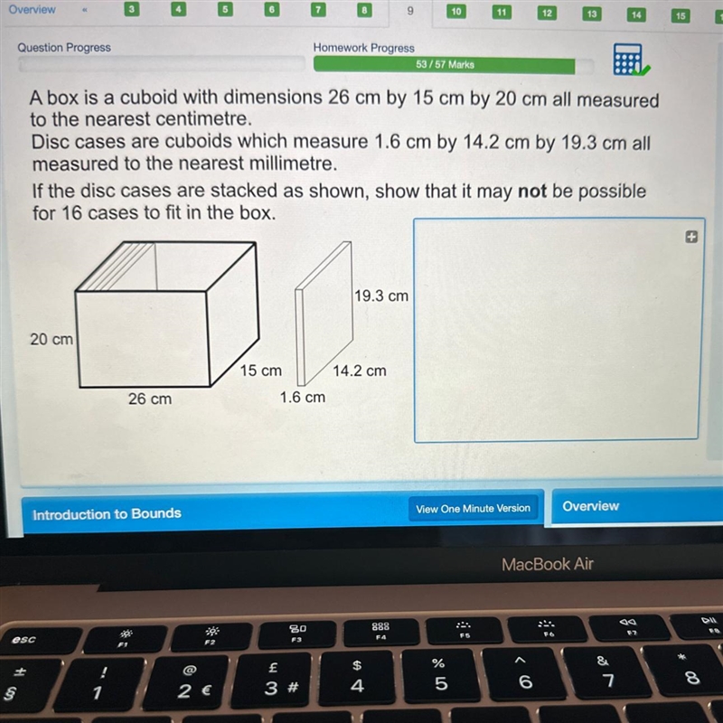 You want to show that 16 cases 1.6 cm thick might not fit in a box 26 cm long if the case dimension is rounded to the nearest mm, and the box dimension is rounded to the nearest cm.