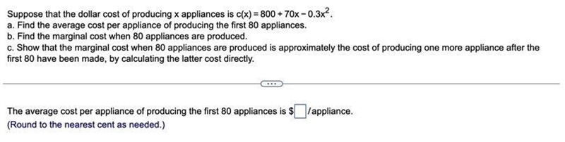 c. To show that the marginal cost when 80 appliances are produced is approximately the cost of producing one more appliance after the first 80 have been made, we can calculate the cost of producing 81 appliances and compare it with the marginal cost at 80 appliances.