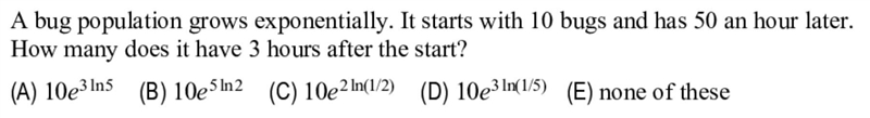According to the question, the bug population starts at 10 and grows to 50 in one hour. Therefore,