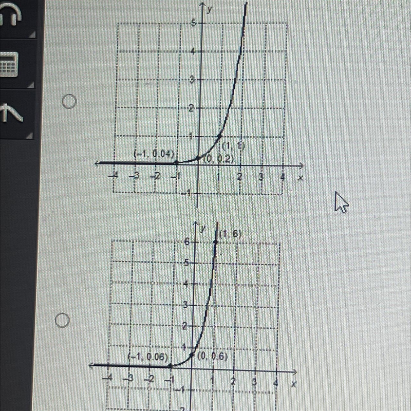 Which graph represents a function with a growth factor of 5? O O (-1.0.325) -2 (0.925) (1.45) 1.2) (-1,0.125) (0.9.5)