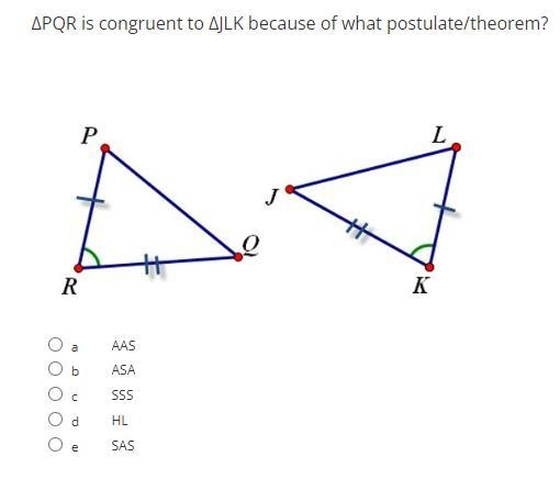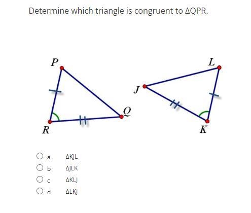 Therefore, Δ QPR ≅ Δ JLK By SAS axiom.
