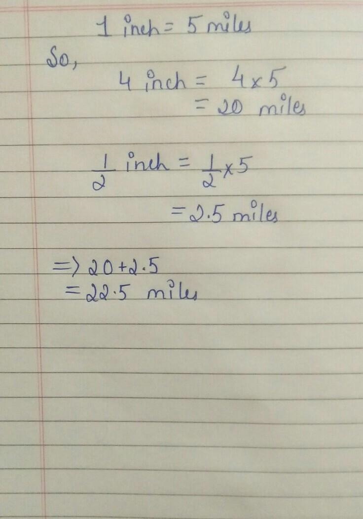 Sam Shrub will drive from his home in Cedar Heights to Pine City. The distance on the map measures 4½ inches. The scale on the map shows 1 inch = 5 miles. According to these measurements, how far is Cedar Heights from Pine City?