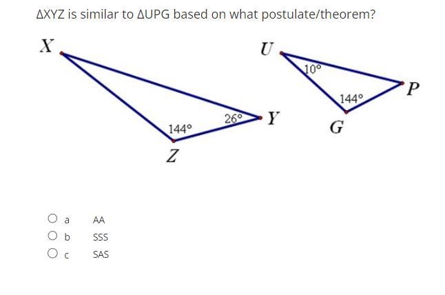 - The Angle-Angle Similarity Axiom (AA). This axiom states that if two triangles have two pairs of corresponding angles that are congruent, then the triangles are similar.