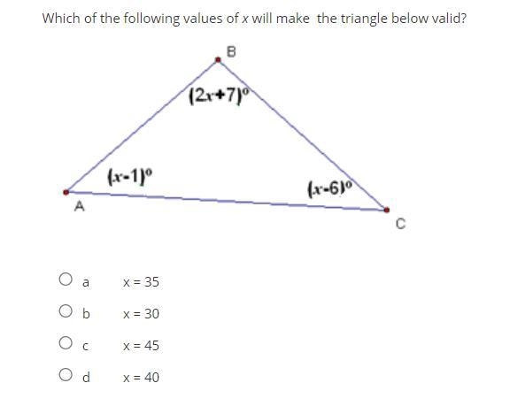 Therefore, equate the sum of the given expressions of angles A, B and C to 180°, and solve for x.