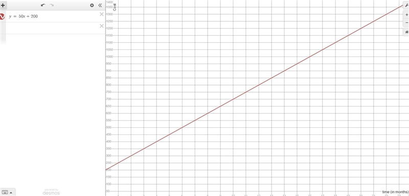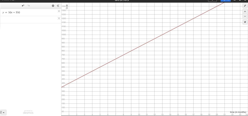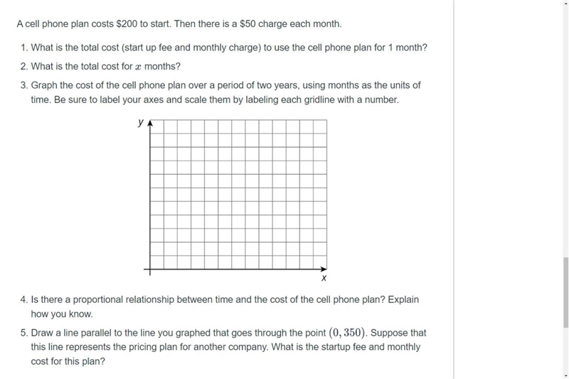 y = 5x + 350. What this means is the the plan would cost the same per month, but the initial cost would be 350 rather than 200.