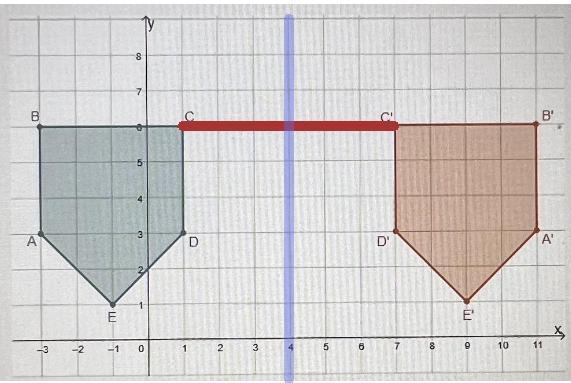 You must measure the distance between the rightmost point on the blue figure and the leftmost point on the orange figure. Then divide it in half and these dots will be the answer, how are they asking for a line you need to specify if it is horizontal or vertical, because the interchanged points are