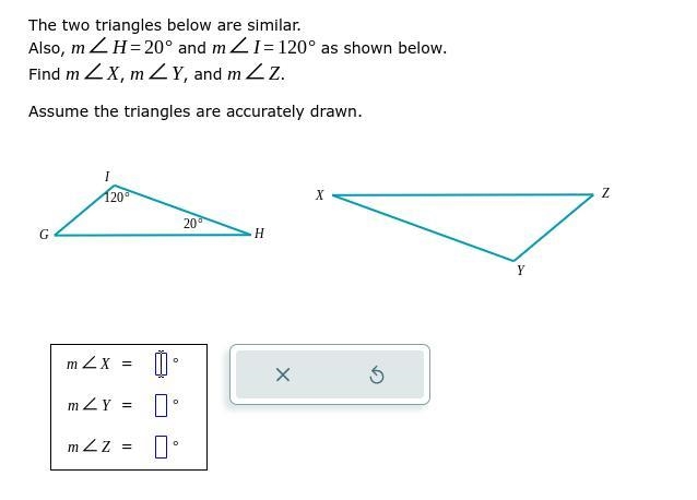 And as the triangles are similar, their length may be different but the size of the angles will remain the same.