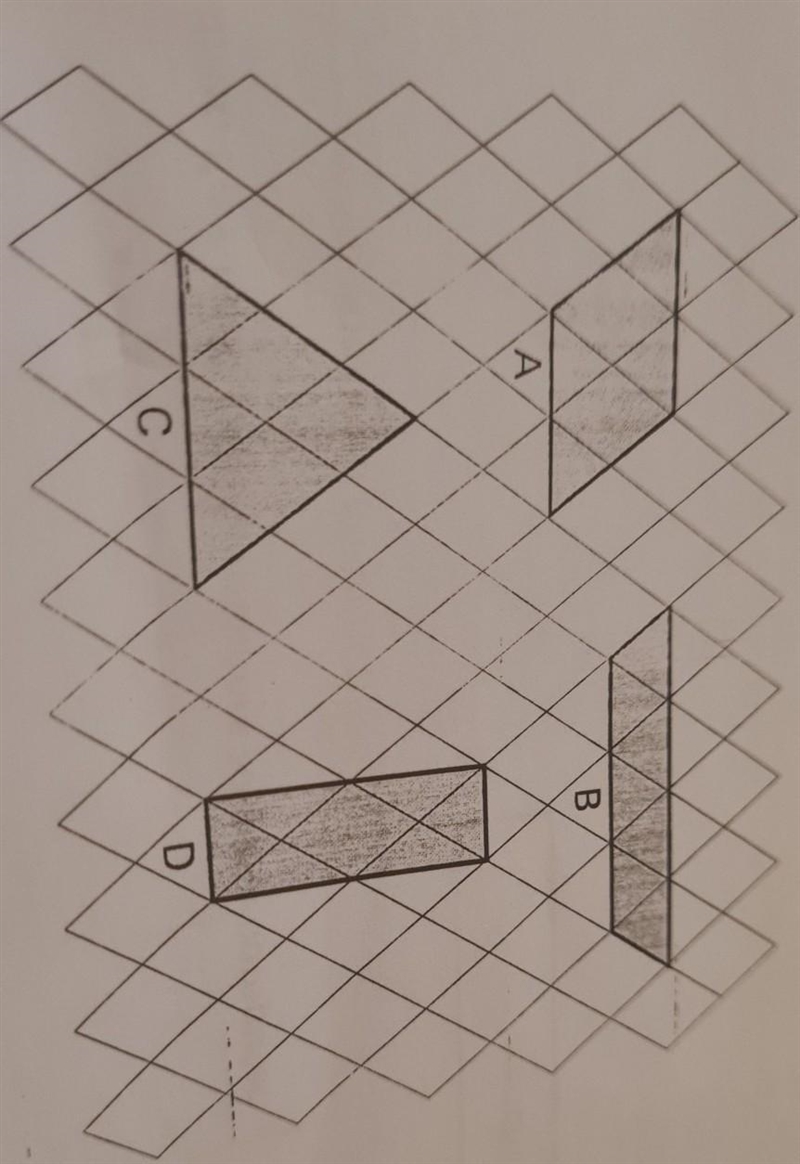 Here are some shapes to draw on a grid. Write the letters of the two shapes that are equal in area. .......... and......... NEED AN ANSWER ASAP PLEASE!!