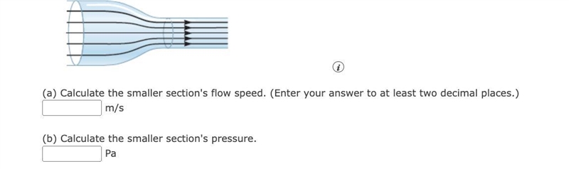 a) What is the flow speed in the second section? Assume the pressure remains constant.