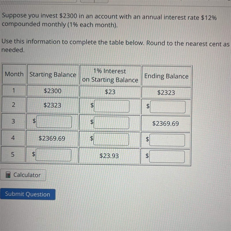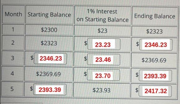 This amount is added to the starting balance to get the ending balance of 2323 + 23.23 = 2346.23