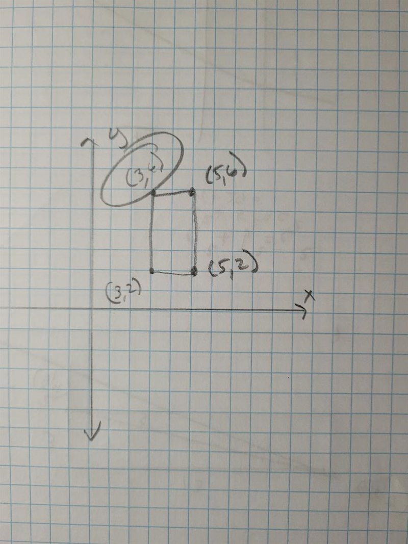 The vertices of a rectangle are located at (5, 2), (3, 2), and (5, 6). What are the coordinates of the fourth vertex?