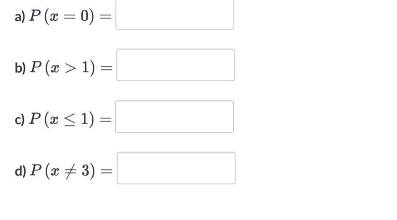 You flip a coin three times. Let "x" represent the number of heads you obtain. Find each of the following probabilities and leave your answers as a decimal rounded to three decimal places.