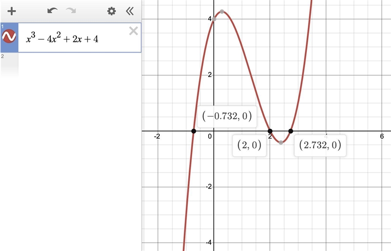 You want to solve x³ -4x² +2x +4 = 0 using a graphing calculator.