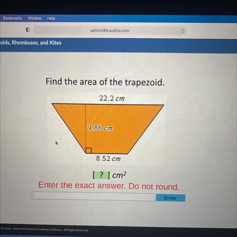 [The base would be (22.2 - 8.52) ÷ 2 = 6.84] - let me know if you want me to explain how I got this answer
