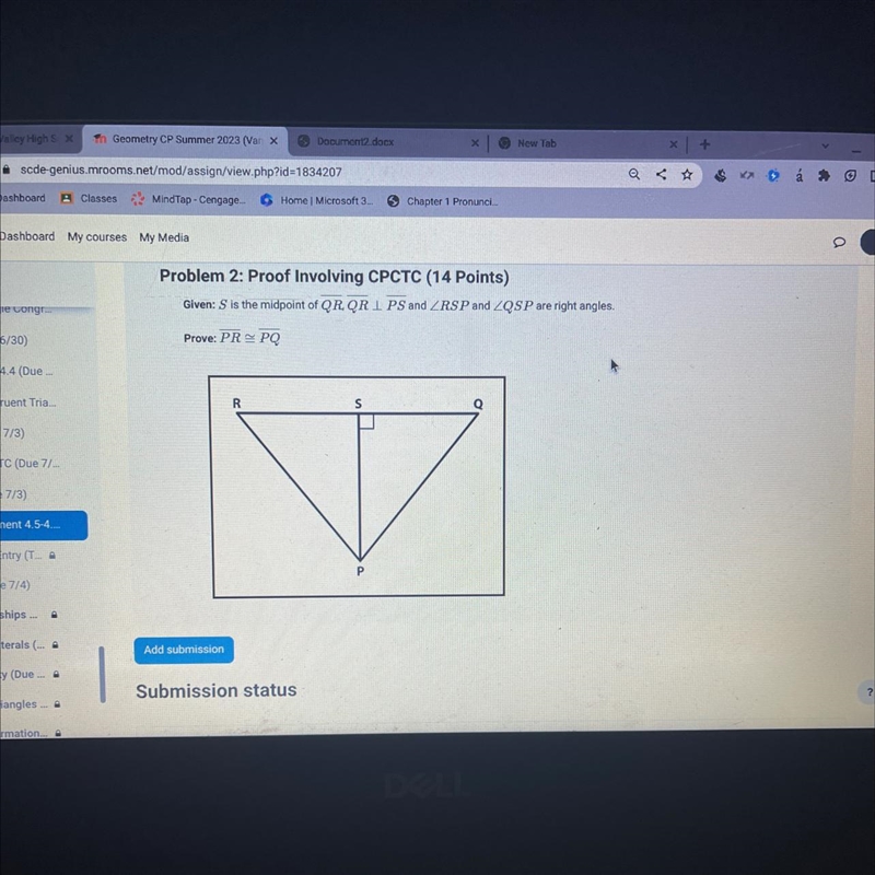 - PR is congruent to PQ (CPCTC)