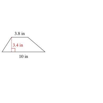 \sf A_(trapezoid) = \left( (3.8 + 10)/(2) \right)in * 3.4in = 6.9in * 3.4in = \boxed{\boxed{\sf 23.46in^2}}