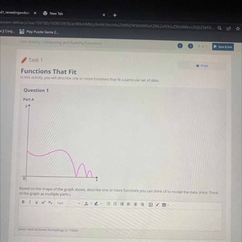 Based on the shape of the graph above, describe one or more functions you can think of to model the data