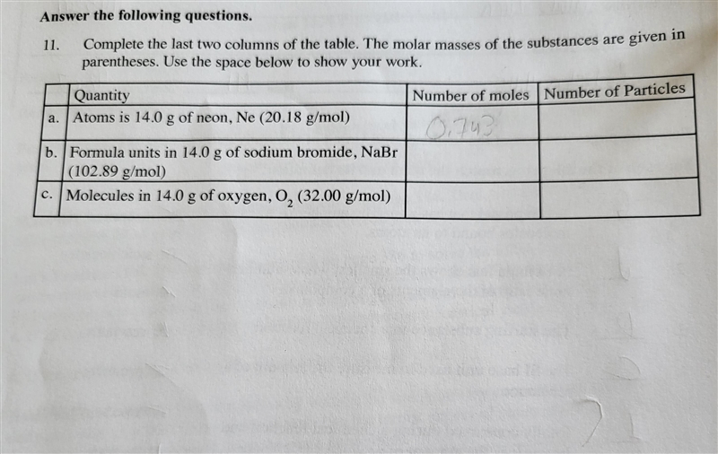 Complete the last two columns of the table. The molar masses of the substances are-example-1