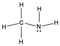 Methylamine, or CH3NH3, contains an internal nitrogen (N) atom. The valence shell electron pair repulsion (VSEPR) theory can be used to ascertain the geometry surrounding this nitrogen atom. Four regions of electron density are suggested by the molecular formula to surround the nitrogen atom: one lone pair and three single bonds to hydrogen atoms.