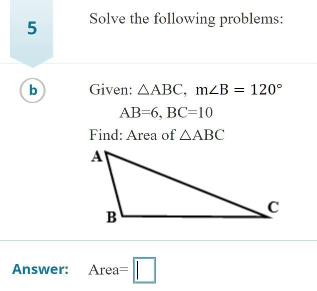 One formula for the area of a triangle is a*b*sin(c)/2. This means that you multiply 2 sides of the triangle and the sine of the included angle (the angle formed by the conjunction of the two segments.) So we have