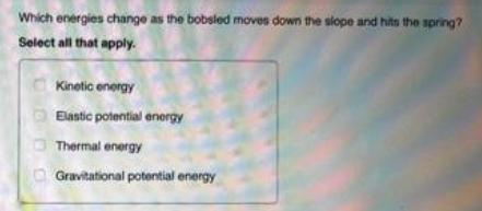 2. As the bobsled moves down the slope and hits the spring, the following types of energy change: