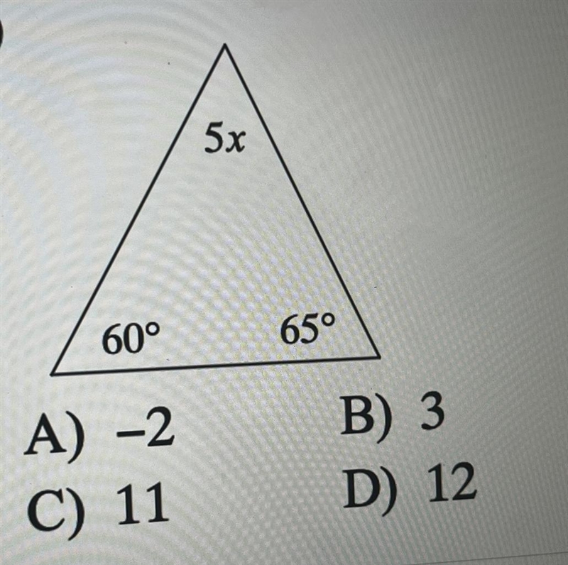 5x + 60 + 65 = 180