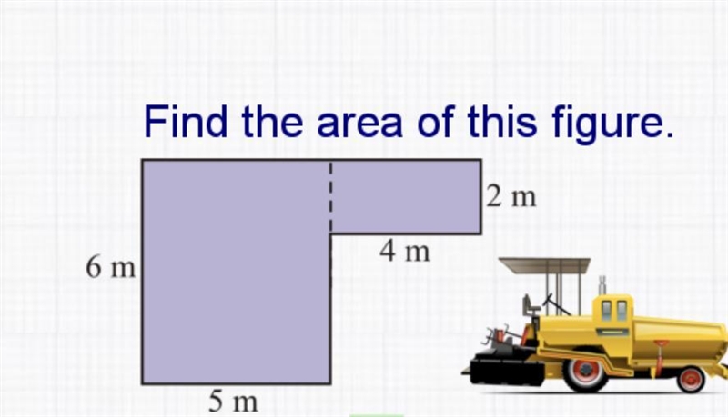 - The measures for the bigger rectangle: 6 m height and 5 m width.