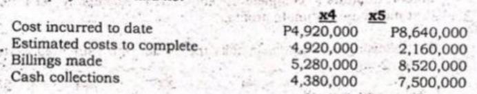 increasing the contract price by P480,000. D uses the percentage of completion method of revenue recognition on long-term construction contracts. The following information are obtained on the project of x4 and