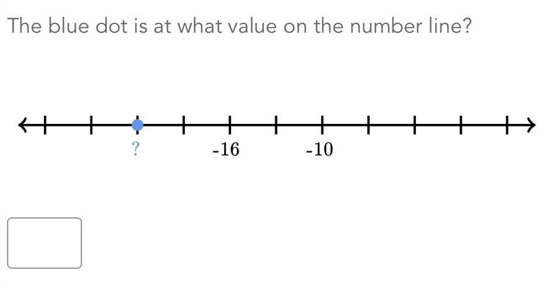 The blue dot is at what value on the number line? -16 -10