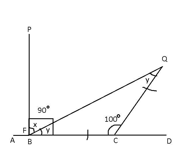 You can see because of the curved lines that BC and CQ are equal which means that it is an isosceles triangle. In a triangle two sides are equal and the angles of those sides are also equal. which means that ∠ABC=∠CQB.