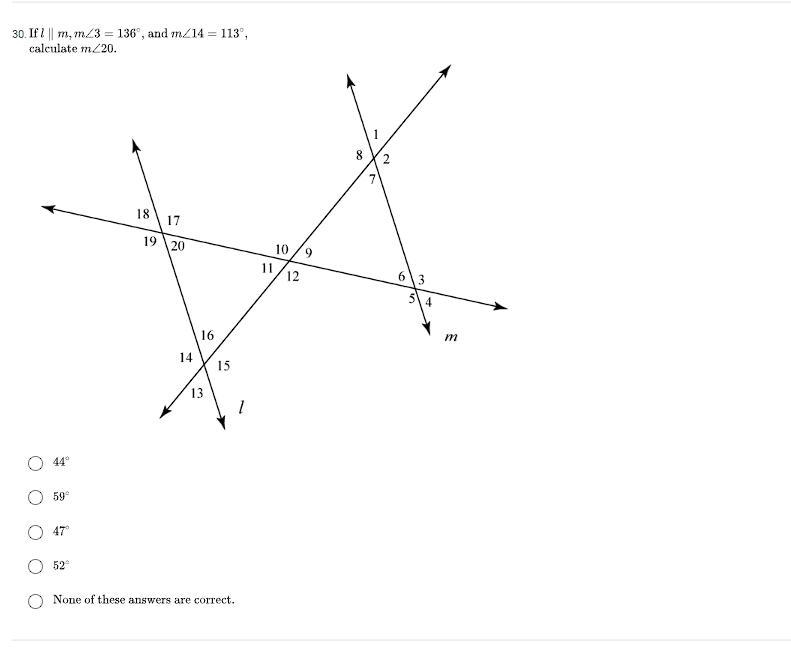 m ∡3 ≅ m ∡17 =136° Since corresponding angle are congruent.