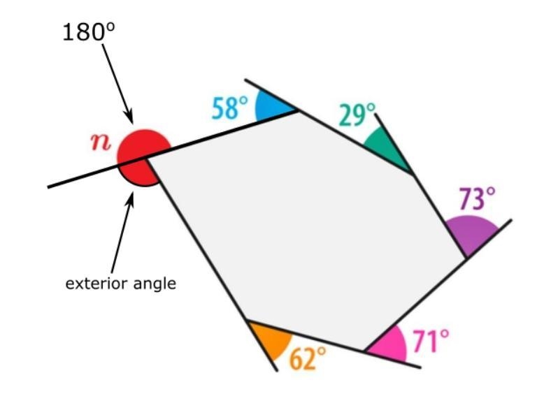 Therefore, the measure of angle n is the sum of the remaining exterior angle and 180°.