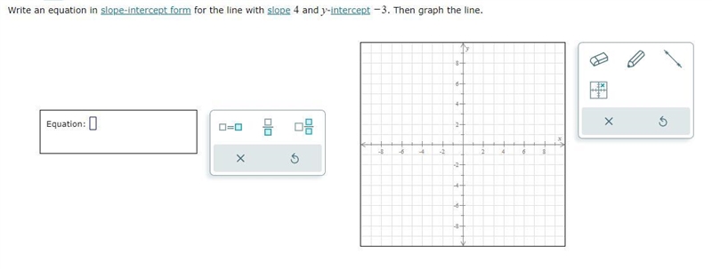 To graph this line, plot the point (0, -3). From this point, go up 4 units, then right 1 unit. You will end up at (1, 1). Plot that point. Finally, draw a straight line that goes through these two points.