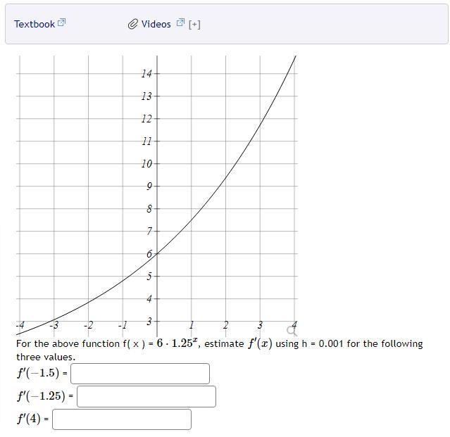 f'(-1.25) = lim h-->0.001 (f(-1.25 + 0.001) - f(-1.25)) / 0.001