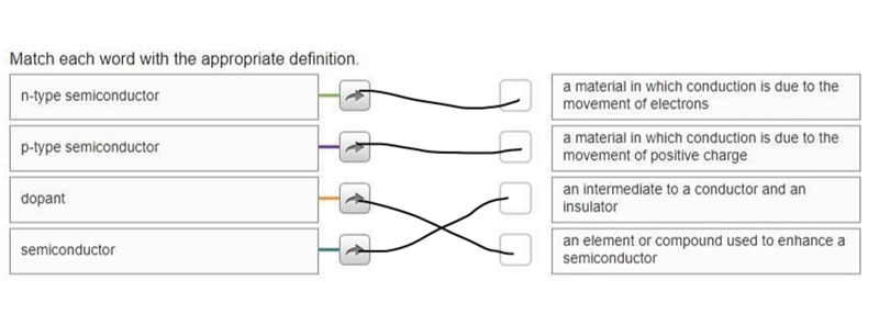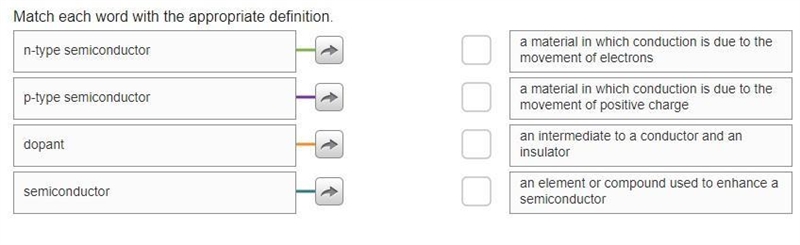 Match each word with the appropriate definition. n-type semiconductor see picture