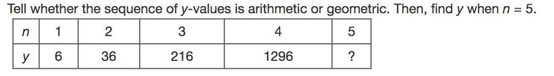 C: geometric; When n = 5, y = 7776