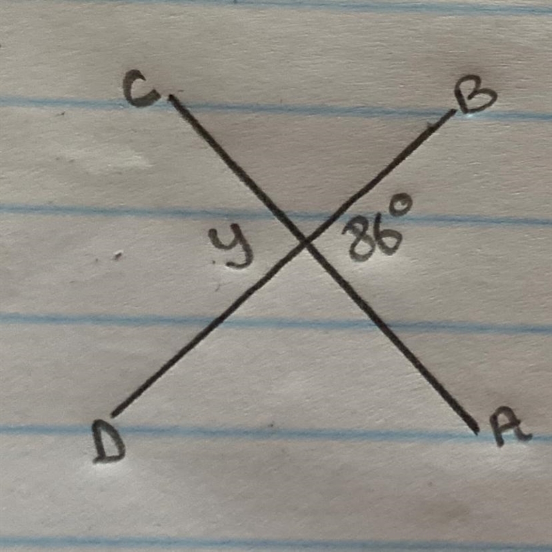 86 and y are the vertical opposite angles i.e measure of both the angles are equal.
